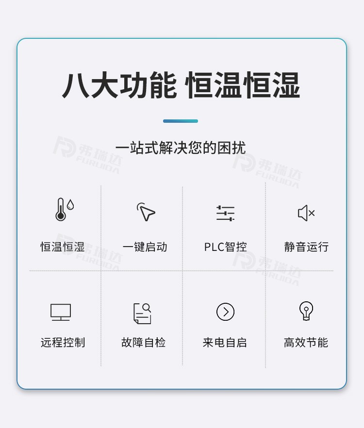 恒溫恒濕空調又稱為恒溫恒濕機,恒溫恒濕機組、恒溫恒濕系統(tǒng)、恒溫恒濕空調設備,弗瑞達恒溫恒濕空調設備特點: